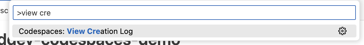 - “Codespaces: View creation log”