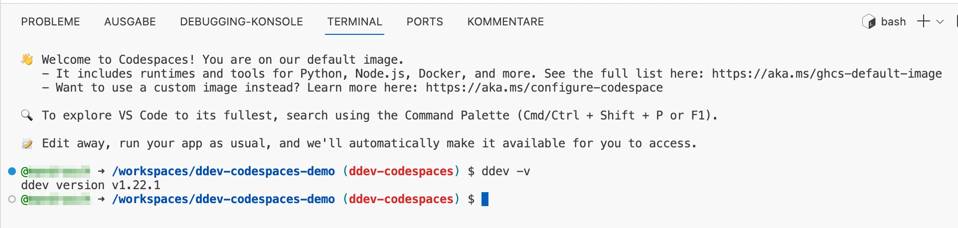 DDEV is now available within your new codespace instance: